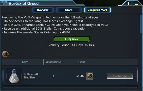 - You can use the Stellar Coins from your inventory to redeem other items in the Vortex of Greed store, e.g. exchange them for the new Cryo-Nano Coolant or the Plasmatic Equalization Plate.